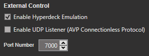 When “HyperDeck Emulation” is enabled, AVP presents itself on the network and to an ATEM switcher as if it was an actual HyperDeck video play unit. This means that you can use the ATEM’s built-in deck control feature to control Legion II.