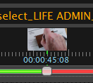 The timeline control gives a graphical display of the clip’s overall length. The hash marks are automatically scaled based on the clips total length. Their placement interval on the line is approximately one second for each small mark and five seconds for the larger. For long running clips, the interval will change to reflect minutes instead.