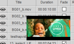TIP: Right clicking on any row will cause a small popup preview window to appear, which contains a thumbnail of a video frame at five seconds in. This time value is fixed and cannot be changed.
