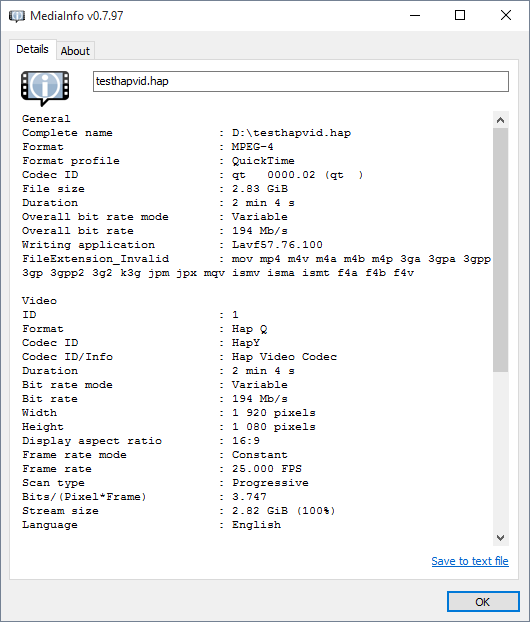 These fields display more of the clips properties. Native resolution the clip was rendered at, frame rate and its bit stream size.